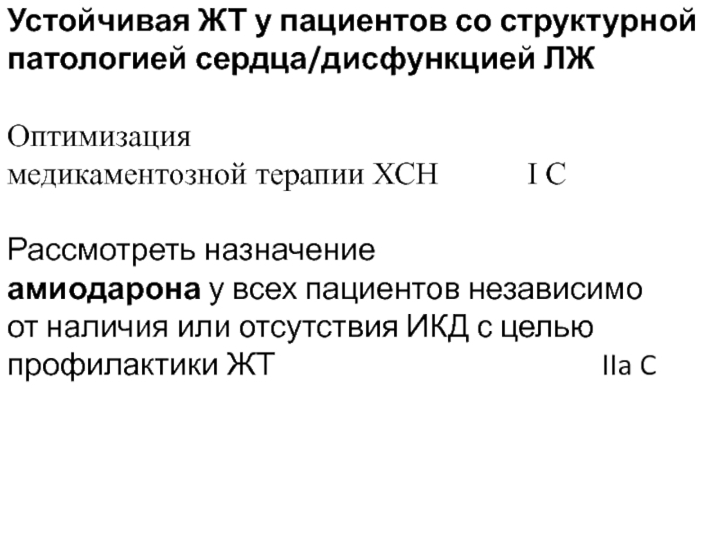 Слайд 58Устойчивая ЖТ у пациентов со структурной патологией сердца/дисфункцией ЛЖ