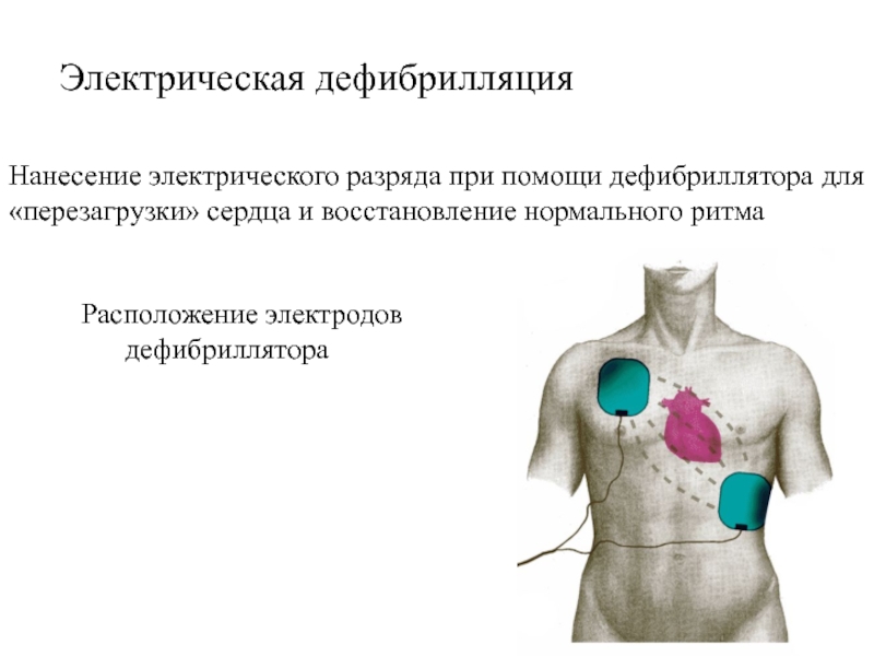 Нанесение электрического разряда при помощи дефибриллятора для «перезагрузки» сердца