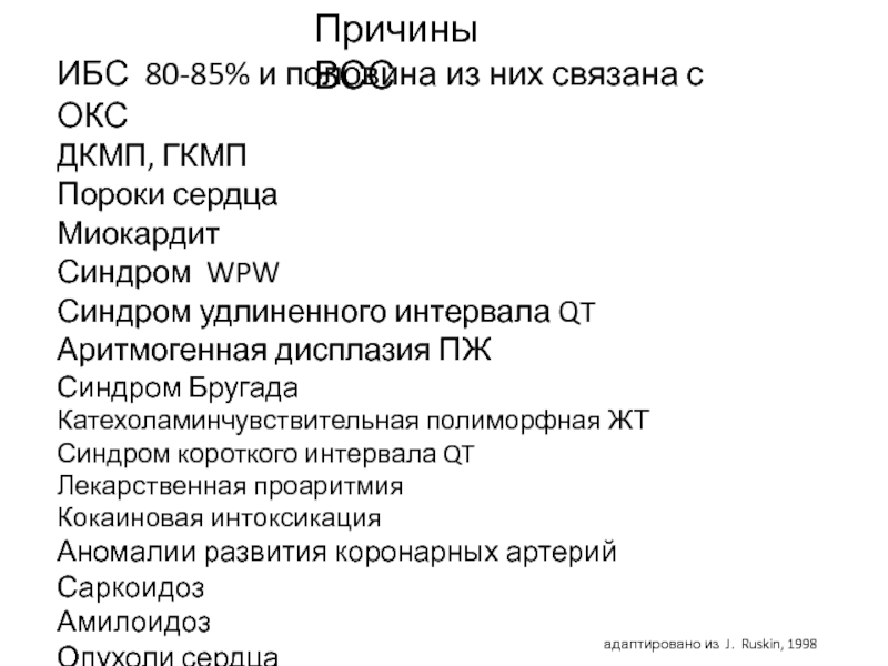 Желудочковая тахикардия и фибрилляция желудочков - 85%