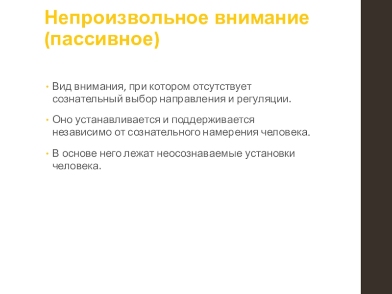 Вид внимания, при котором отсутствует сознательный выбор направления