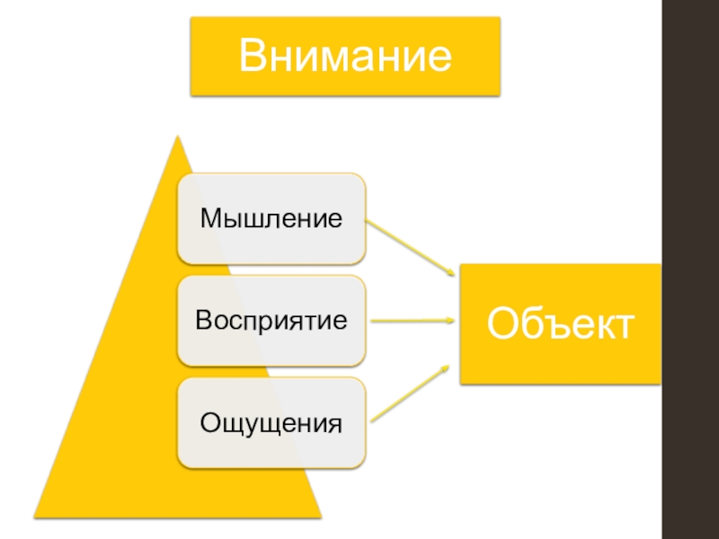 Слайд 5Внимание находит себе выражение в отношении человека к объекту.
