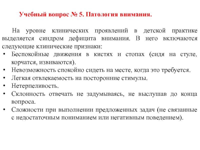 детской практике выделяется синдром дефицита внимания. В него включаются следующие