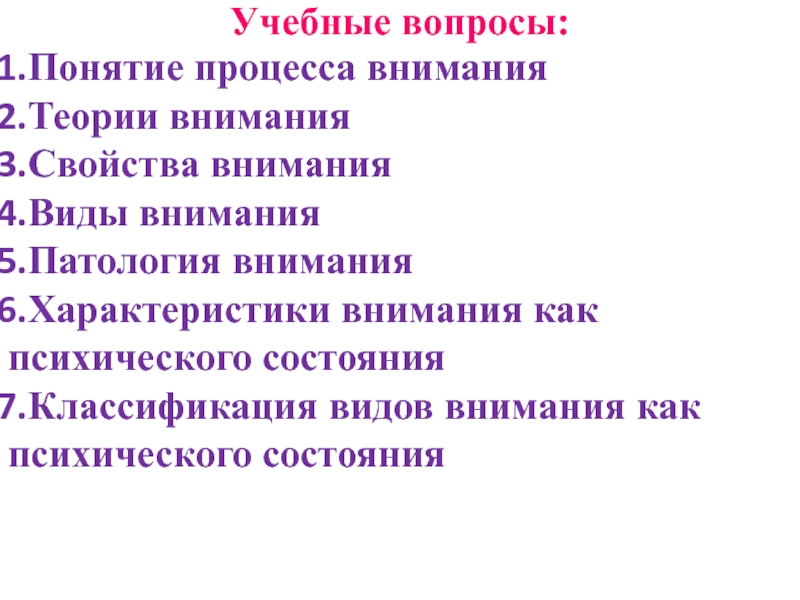 Слайд 5Учебный вопрос №1. Понятие процесса внимание