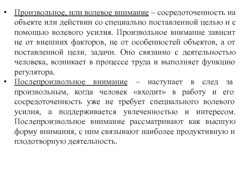 Произвольное, или волевое внимание – сосредоточенность на объекте или действии