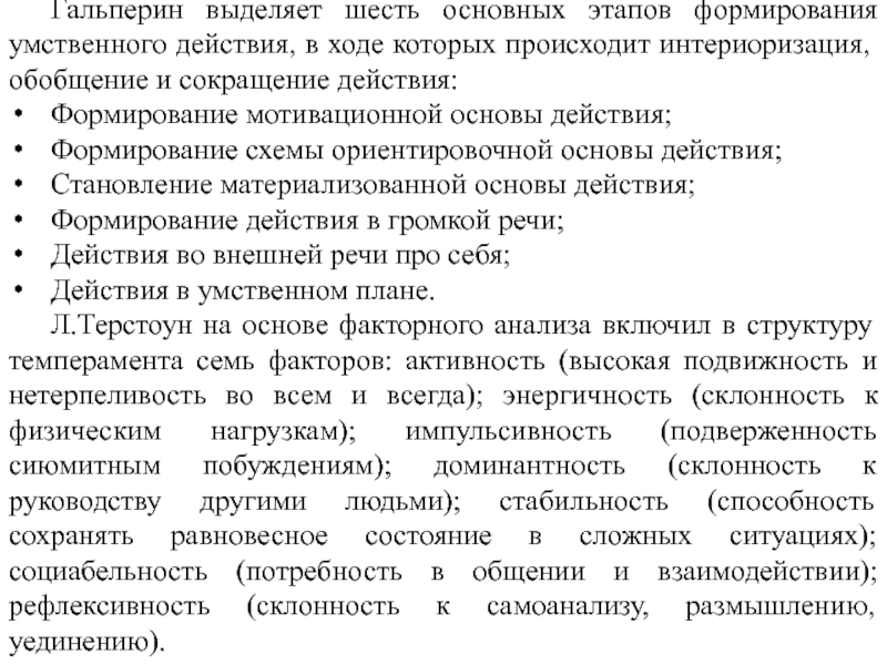 Слайд 22Гальперин выделяет шесть основных этапов формирования умственного действия, в ходе