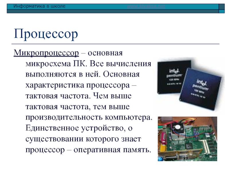Микропроцессор – основная микросхема ПК. Все вычисления выполняются в ней.