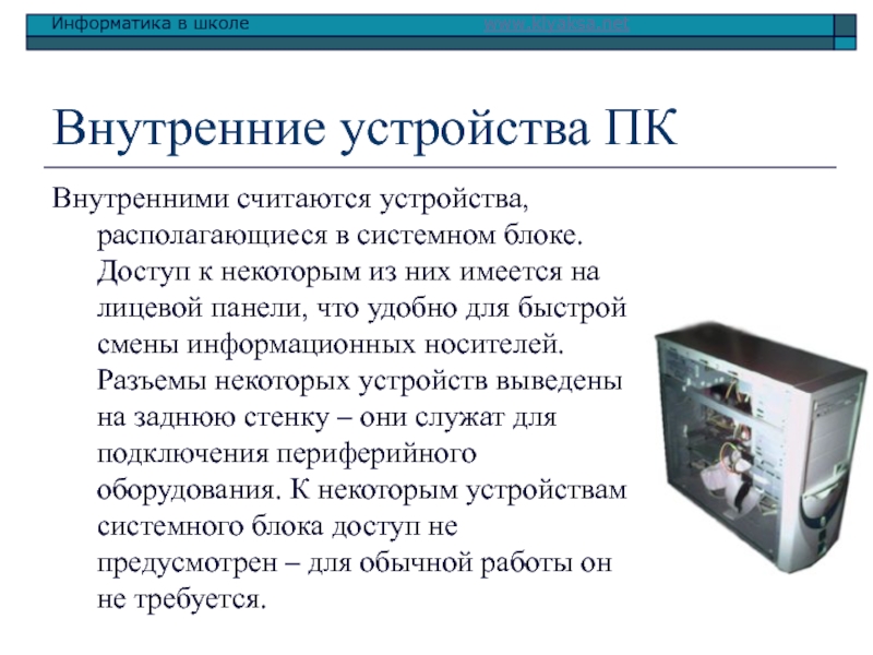Внутренними считаются устройства, располагающиеся в системном блоке. Доступ