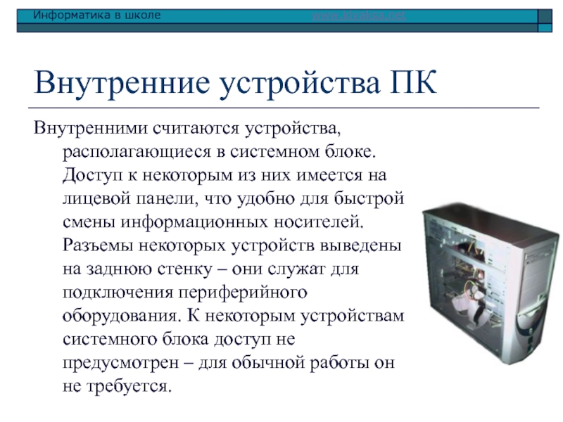 Внутренними считаются устройства, располагающиеся в системном блоке. Доступ