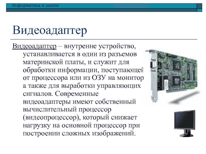 Слайд 7Видеоадаптер
