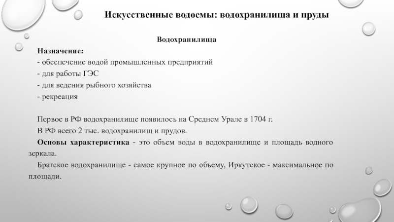 Слайд 8Искусственные водоемы: водохранилища и пруды