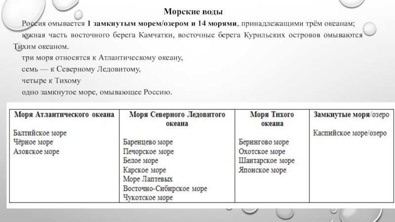Россия омывается 1 замкнутым морем/озером и 14 морями, принадлежащими
