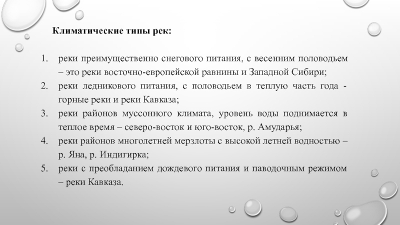 половодьем в теплую часть года - горные реки и реки Кавказа;