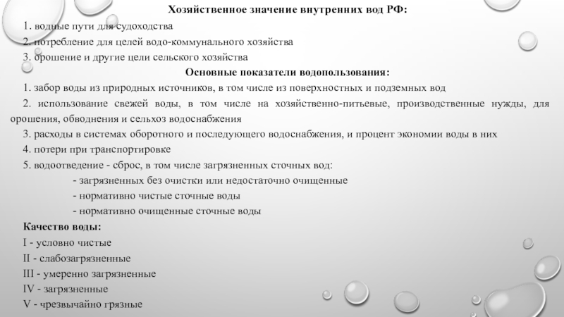 Слайд 15Хозяйственное значение внутренних вод РФ: