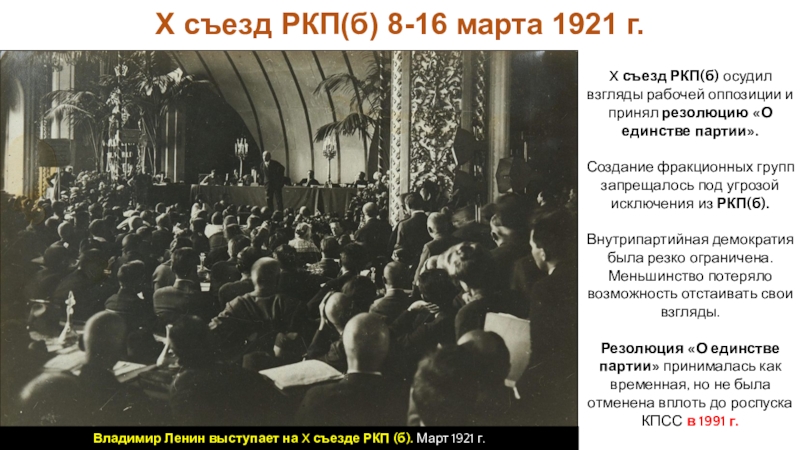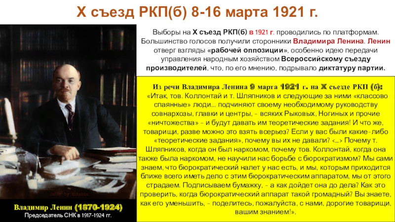 Из речи Владимира Ленина 9 марта 1921 г. на X съезде РКП (б):