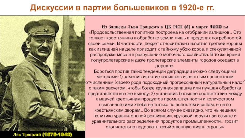 Из статьи Льва Троцкого «Уроки Октября» (1925 г.):