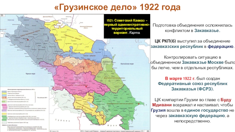 1921: Советский Кавказ – первый административно-территориальный вариант. Карта.
