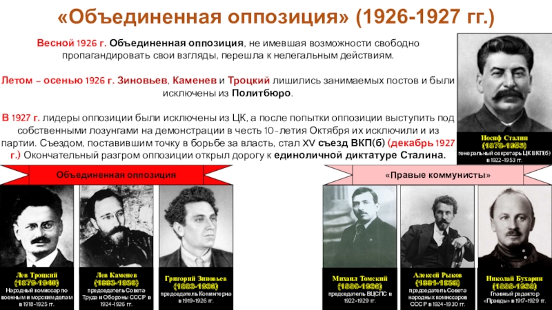 Создание и разгром «объединенной оппозиции» (Троцкий-Каменев-Зиновьев)
