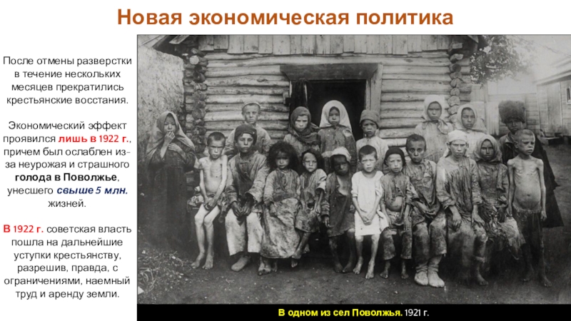Отмена продразверстки не полностью удовлетворила крестьян. Подъем сельского хозяйства был невозможен без отмены ограничений аренды и наемного труда.