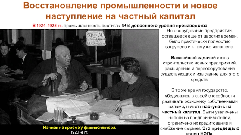 Первоначально НЭП понимался большевистским руководством как маневр в целях накопления сил. В связи с мировой революцией должен был начаться новый натиск на капитал. Но к середине 1920-х гг. стало ясно, что мировой революции в обозримом будущем не будет.