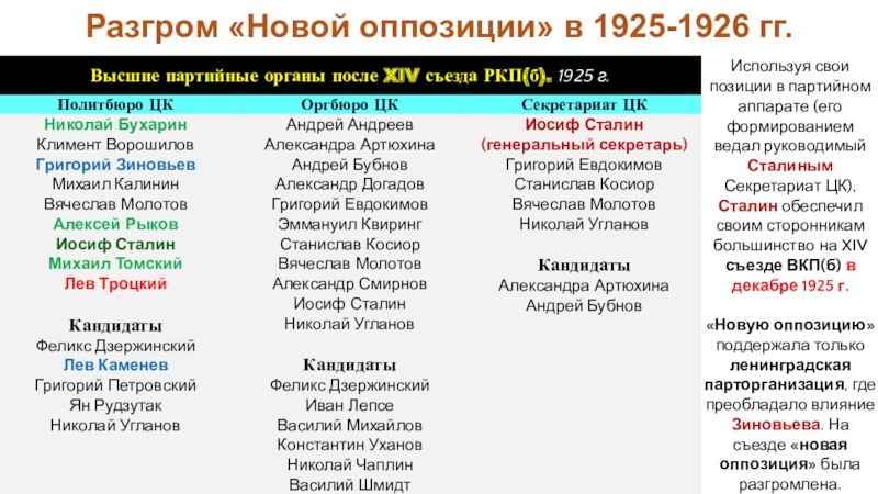 Разгром «Новой оппозиции» в 1925-1926 гг.