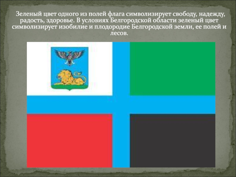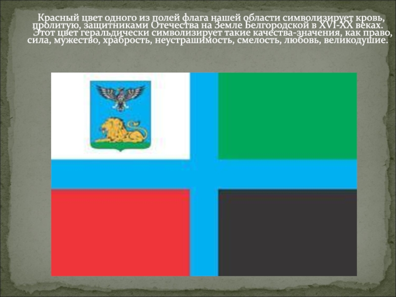 Слайд 8 Черный цвет одного из полей флага Белгородской