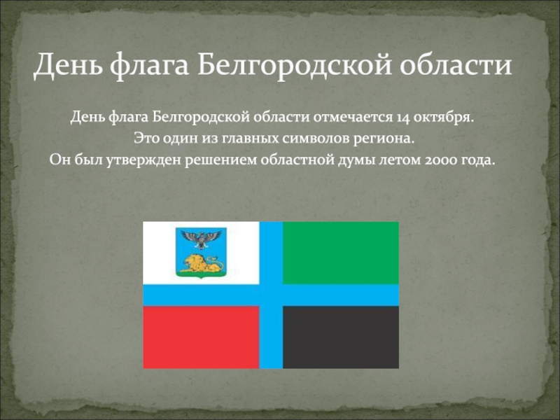 Слайд 9День флага Белгородской области отмечается 14 октября.