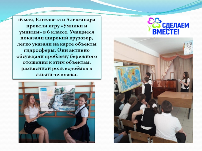 в 6 классе. Учащиеся очень увлеклись рассказом Елизаветы. Активно участвовали