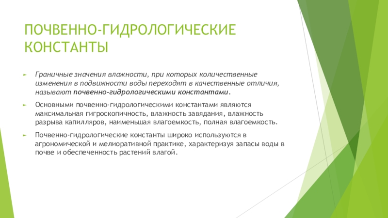 Слайд 18ПОЧВЕННО-ГИДРОЛОГИЧЕСКИЕ КОНСТАНТЫ