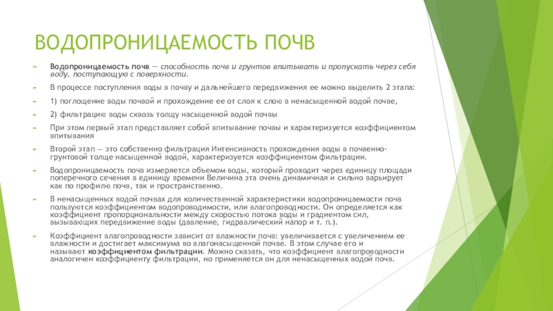 Слайд 19ВОДОПРОНИЦАЕМОСТЬ ПОЧВ