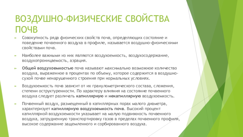 Слайд 28ВОЗДУШНО-ФИЗИЧЕСКИЕ СВОЙСТВА ПОЧВ