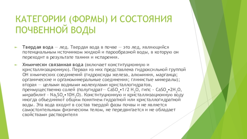 Слайд 5КАТЕГОРИИ (ФОРМЫ) И СОСТОЯНИЯ ПОЧВЕННОЙ ВОДЫ