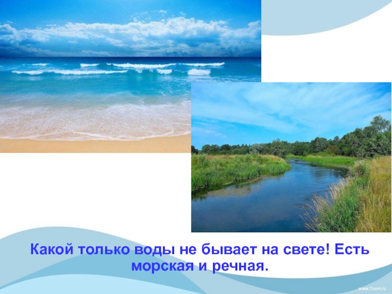 Слайд 20Какой только воды не бывает на свете! Есть морская и