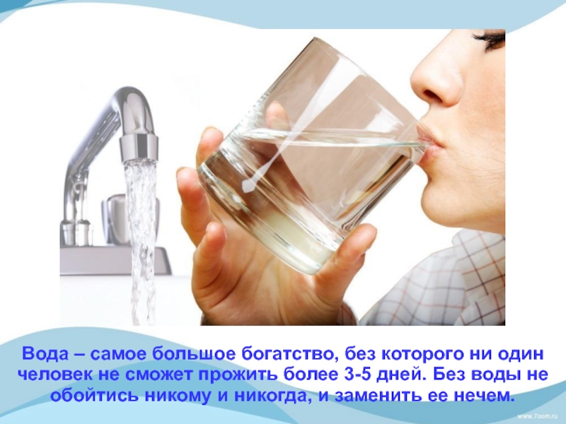 Слайд 33Вода – самое большое богатство, без которого ни один человек