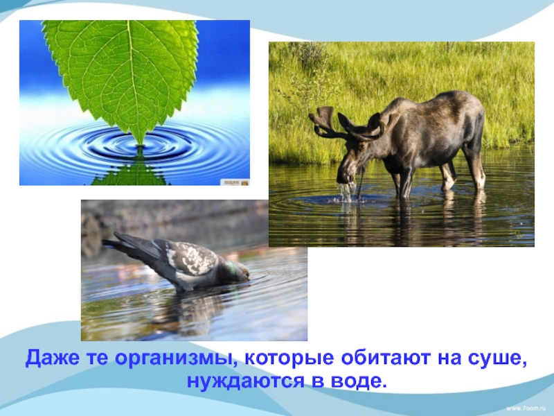 Слайд 19Даже те организмы, которые обитают на суше, нуждаются в воде.