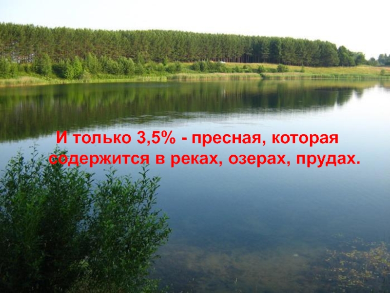 Слайд 15И только 3,5% - пресная, которая содержится в реках, озерах,