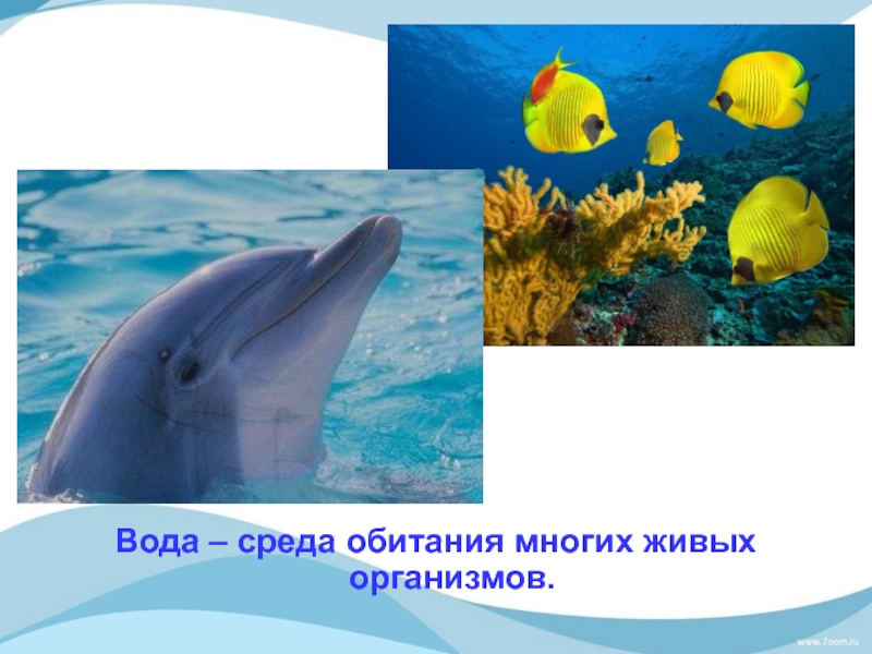 Слайд 18Вода – среда обитания многих живых организмов.
