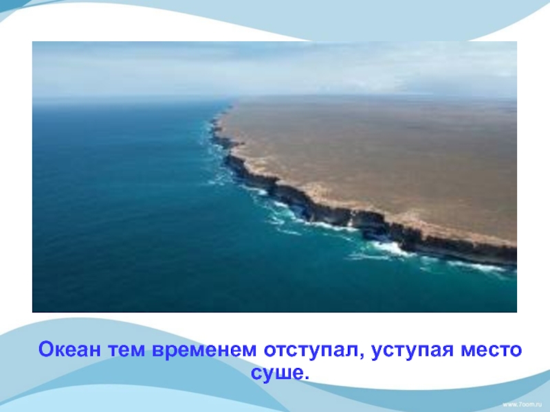 Слайд 9Океан тем временем отступал, уступая место суше.