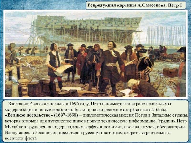 Император овладел многими науками, вывел Российскую империю к Балтийскому морю, прорубив «окно в Европу». Благодаря его указам Российская империя смогла сократить отставание от передовых европейских стран, стала великой державой.