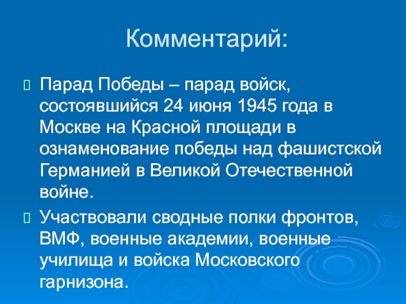 Парад Победы – парад войск, состоявшийся 24 июня 1945 года