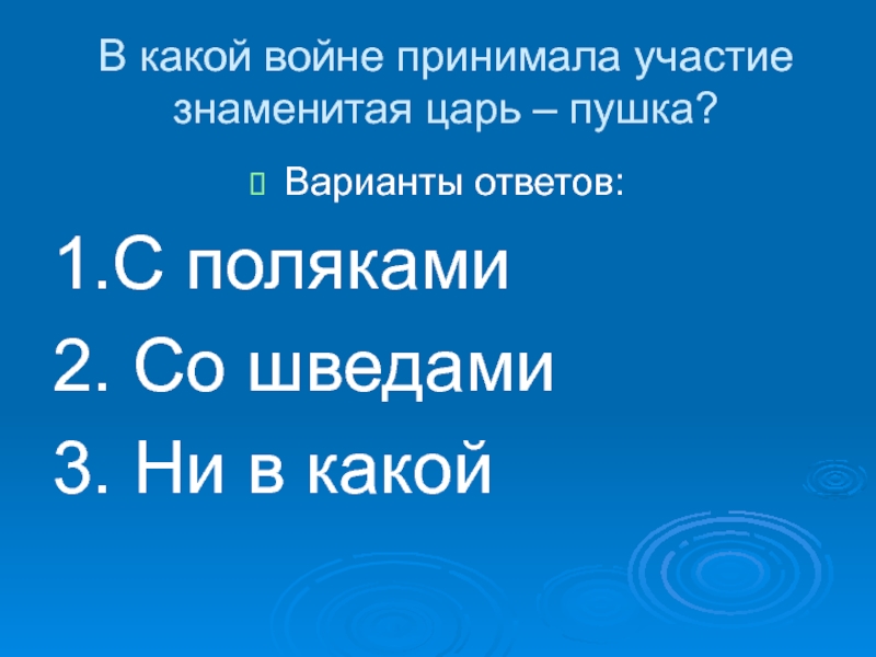 Слайд 17В какой войне принимала участие знаменитая царь – пушка?