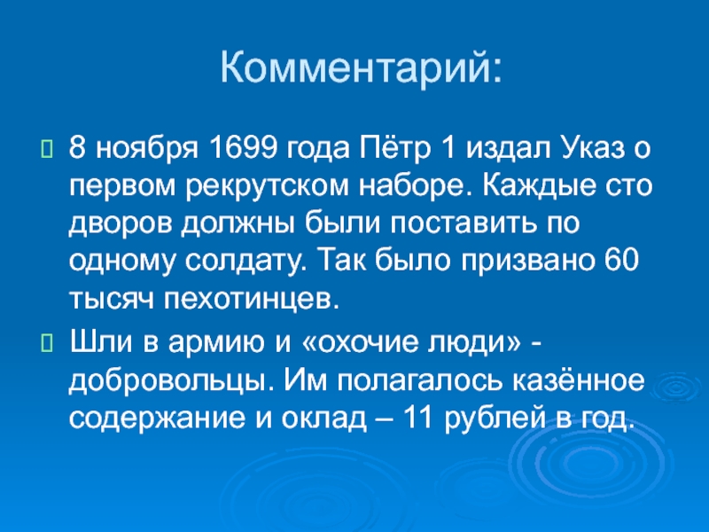 рекрутском наборе. Каждые сто дворов должны были поставить по одному