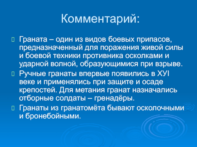 Граната – один из видов боевых припасов, предназначенный для поражения