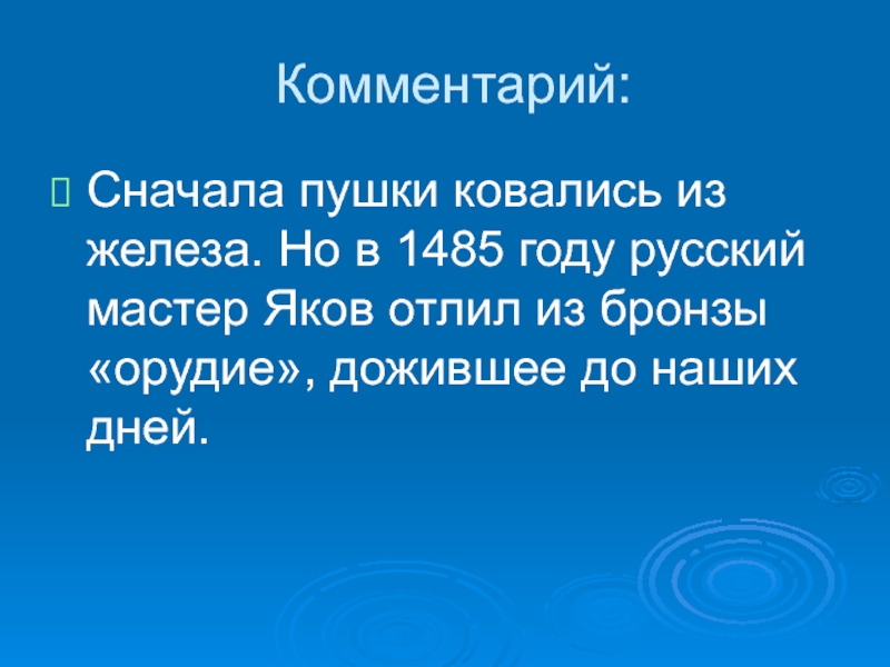 Сначала пушки ковались из железа. Но в 1485 году русский