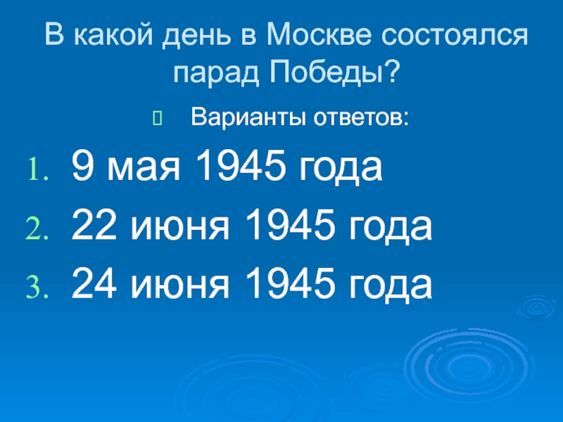 Слайд 41В какой день в Москве состоялся парад Победы?