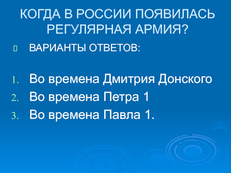 Слайд 2КОГДА В РОССИИ ПОЯВИЛАСЬ РЕГУЛЯРНАЯ АРМИЯ?