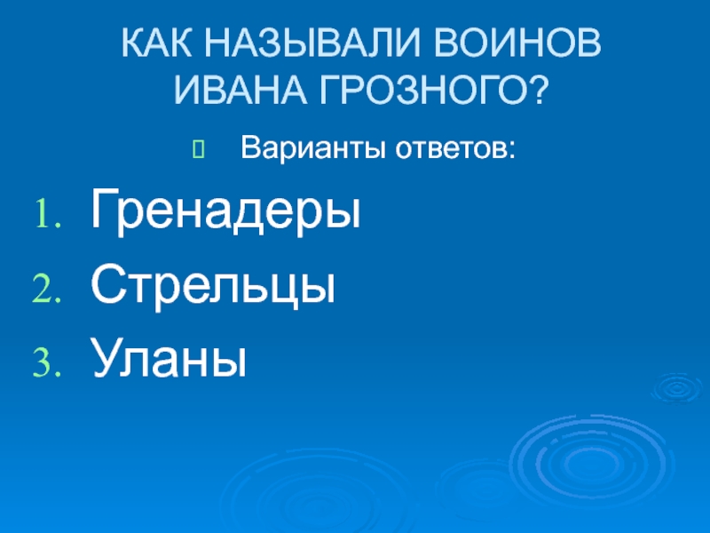 Слайд 14КАК НАЗЫВАЛИ ВОИНОВ ИВАНА ГРОЗНОГО?