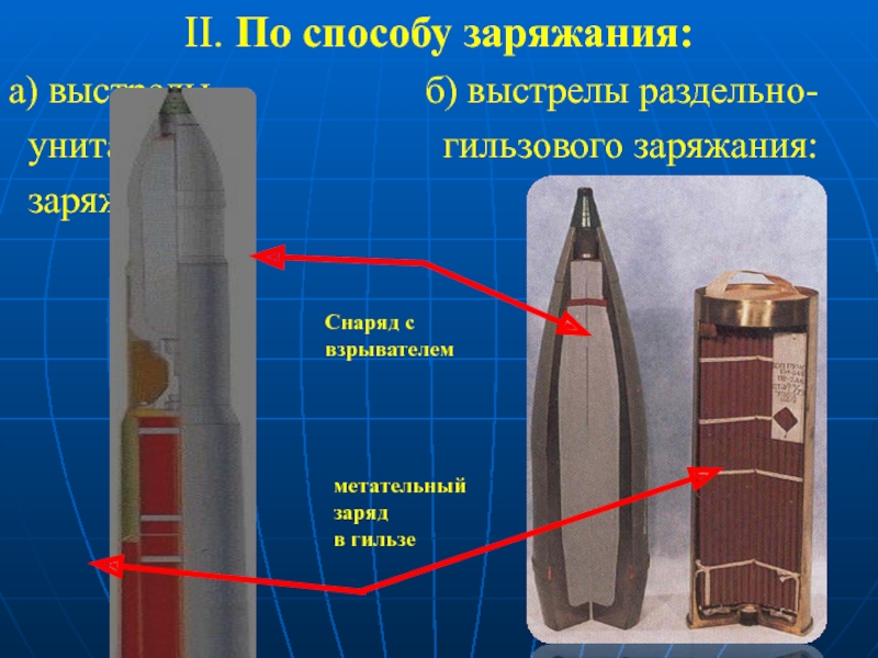 Слайд 7в) выстрелы картузного заряжания: