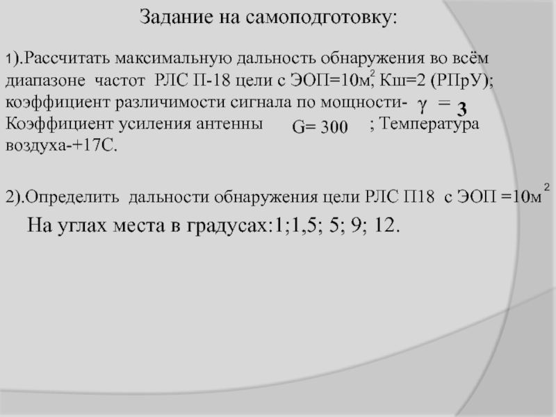 2).Определить дальности обнаружения цели РЛС П18 с ЭОП =10м