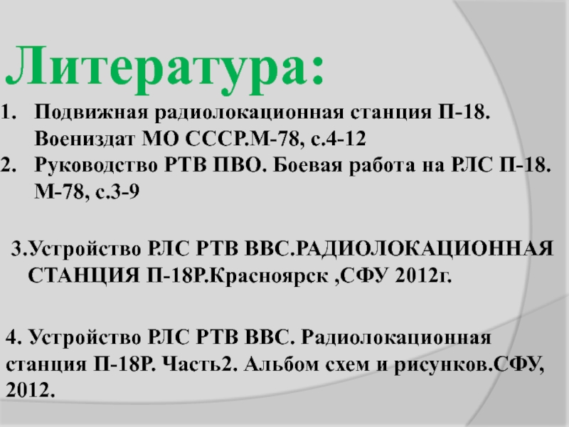 4. Устройство РЛС РТВ ВВС. Радиолокационная станция П-18Р. Часть2. Альбом схем и рисунков.СФУ, 2012.