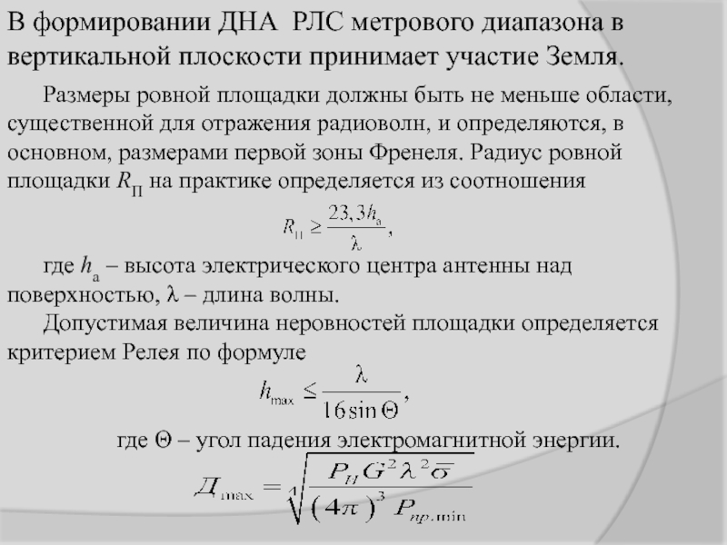 где hа – высота электрического центра антенны над поверхностью, λ – длина волны.
